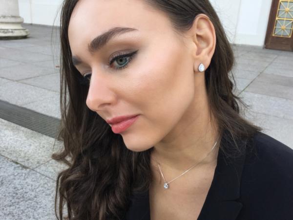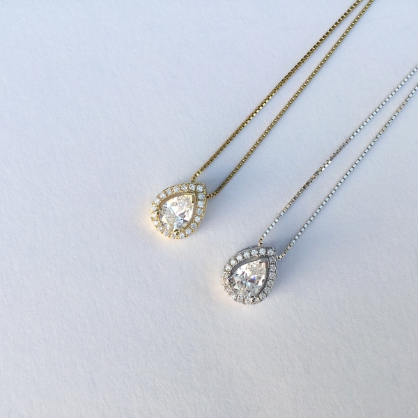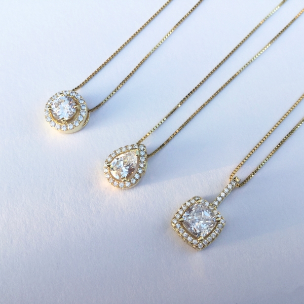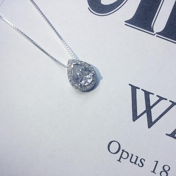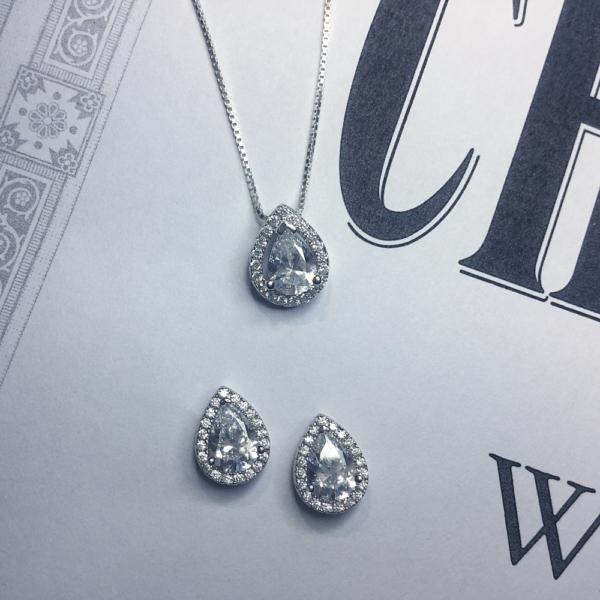 925er Sterlingsilber rhodiniert, 18 ct. Weißgold vergoldet mit einem weißen Zirkonia in Tropfenform. Halskette: 925er Sterlingsilber rhodiniert, 18 ct. Weißgold vergoldet.