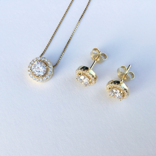 Bei diesem fein gearbeiteten, edlen Anhänger mit Kette vereinen sich um einen funkelnden, runden Zirkonia scheinbar fugenlos weitere Steine im Fantasie-Schliff und verleiht ihm eine auffallende Einzigartigkeit. Besonders luxuriös wirkt die Kette im Set mit den passenden Ohrringen.