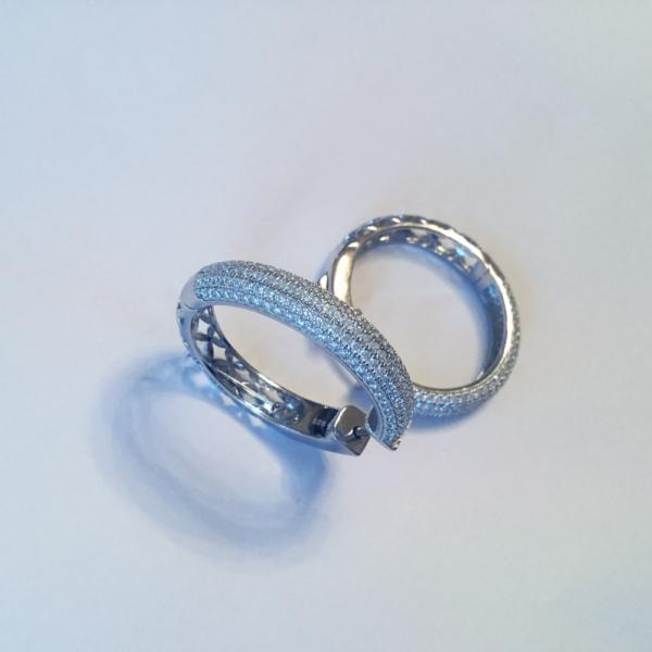 Diese eleganten Ohrringe sorgen dank ihrer Pavé-Fassung mit funkelnden Zirkonia für spektakuläre Lichtreflexe. Sie eigenen sich zum sportlichen Look jeden Tag sowie auch für den großen Auftritt bei besonderen Gelegenheiten und setzen bei jeder Trägerin ein absolutes Stil-Statement. Besonders edel wirken die hochpolierten Außenflächen. Ein ausgeklügelter Sicherheitsverschluss sorgt dafür, dass die Ohrringe besonders gut sitzen.