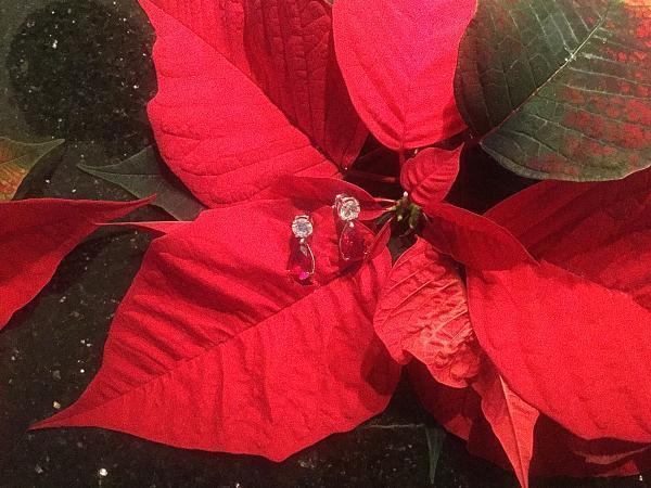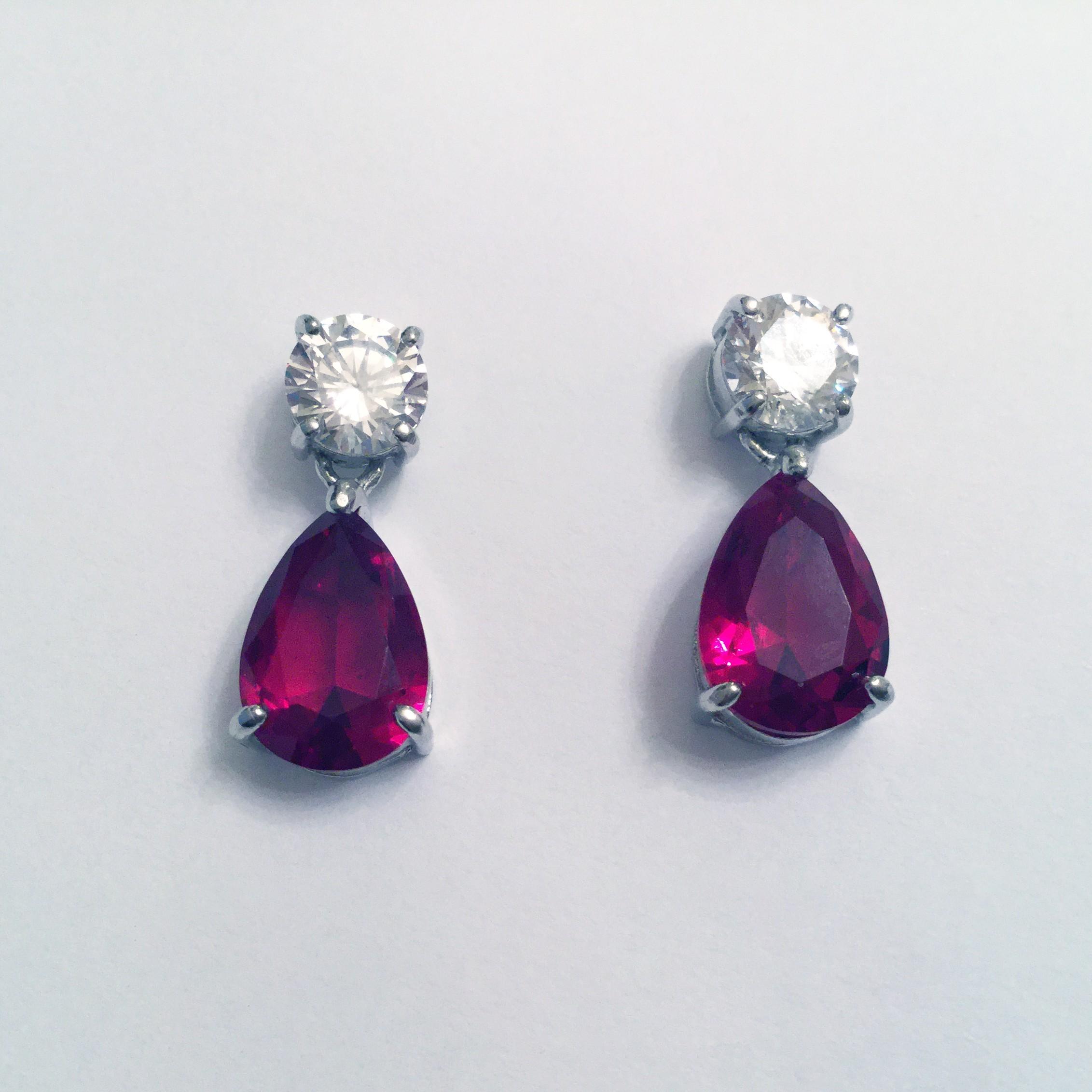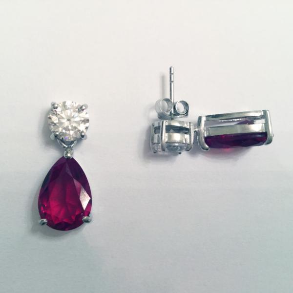 925er Sterlingsilber rhodiniert, 18 ct Weißgold vergoldet mit rotem Stein (Tropfenform) kombiniert mit einem weißen Zirkonia, ca. 2,5 cm, Stecker
