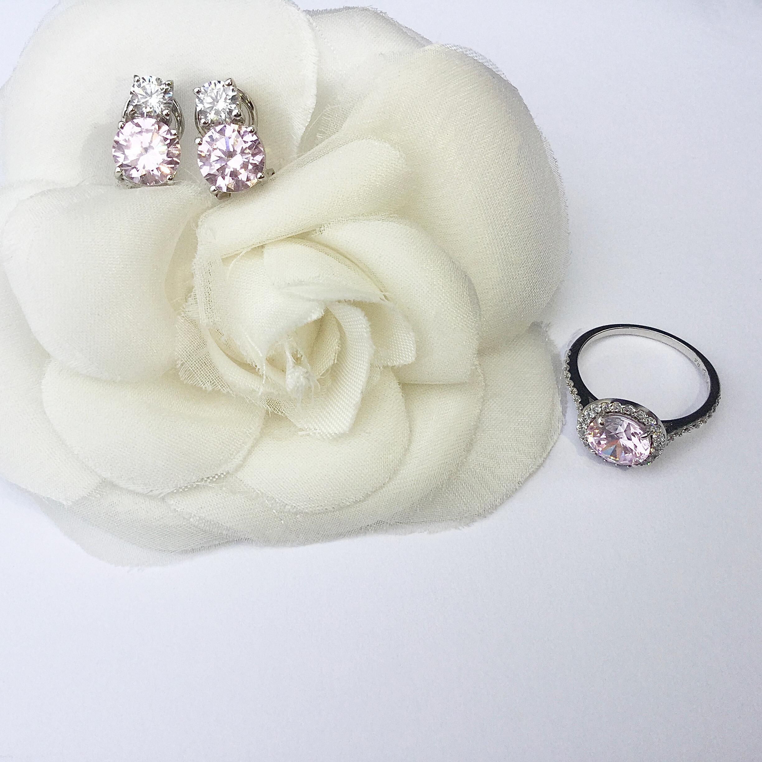 Die spektakuläre Ausstrahlung rosafarbener Steine erweckt sowohl bei der Trägerin wie auch beim Betrachter emotionale Faszination. Bei unseren beiden Kreationen PINK FINENESS steht jeweils ein zentraler Hauptstein im Mittelpunkt, der mit weißen Steinen kombiniert ist. Eine perfekte Symbiose, die für ein spektakuläres Lichtspiel und eine optimale Farbbalance sorgt. Besonders luxuriös wirken Ring und Ohrringe im Set – sind aber selbstverständlich auch einzeln zu erwerben.