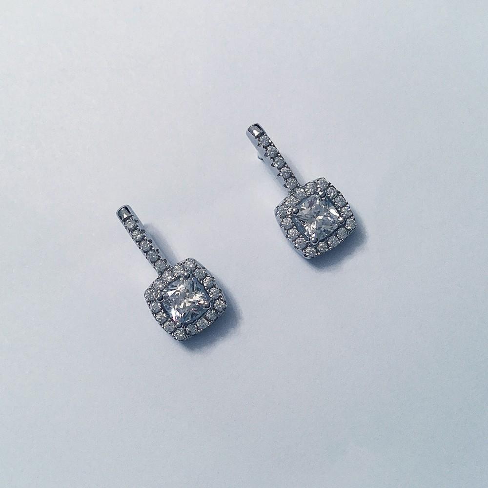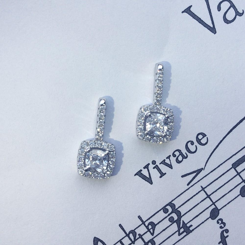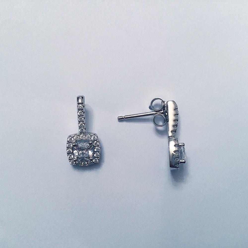 925er Sterlingsilber rhodiniert, 18 ct. Weißgold vergoldet mit einem weißen Kissenschliff-Zirkonia, Stecker.