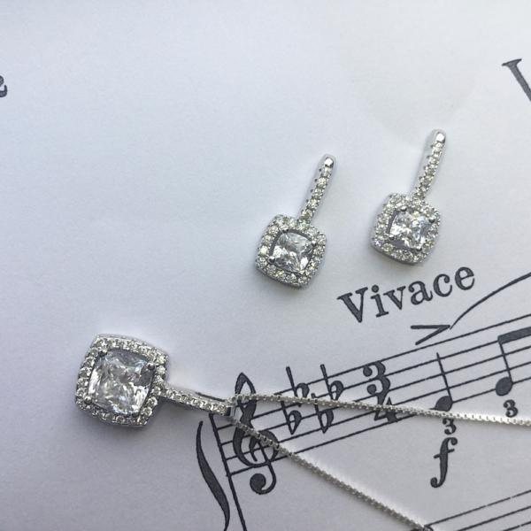 Bei diesen fein gearbeiteten, edlen Ohrringen vereinen sich um einen funkelnden, Kissenschliff-Zirkonia scheinbar fugenlos weitere Steine im Fantasie-Schliff und verleihen ihnen eine auffallende Einzigartigkeit. Besonders luxuriös wirken die Ohrringe im Set mit dem passenden Anhänger.