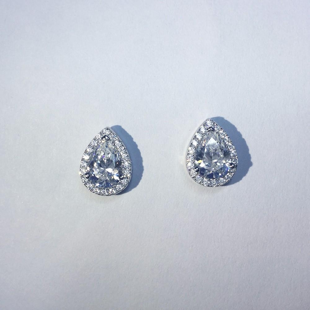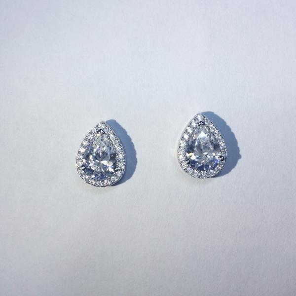 925er Sterlingsilber rhodiniert, 18 ct. Weißgold vergoldet mit einem weißen Zirkonia in Tropfenform, Stecker