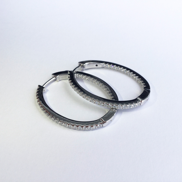 925er Sterlingsilber rhodiniert, 18 ct. Weißgold, Gelbgold oder Roségold vergoldet,108 Steine, oval, Stecker. Durchmesser ca. 3,5 cm