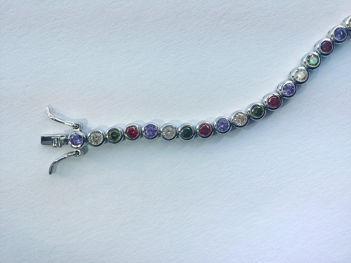Tennis Bracelet Rainbow 18 cm – Bunte Zirkonia, rund gefasst